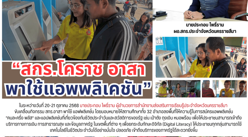 ข่าวประชาสัมพันธ์กิจกรรม 27 ตุลาคม 2025 Jenphop new “สกร.โคราช อาสาพาใช้แอพพลิเคชัน” ในระหว่างวันที่ 20-2 Read More