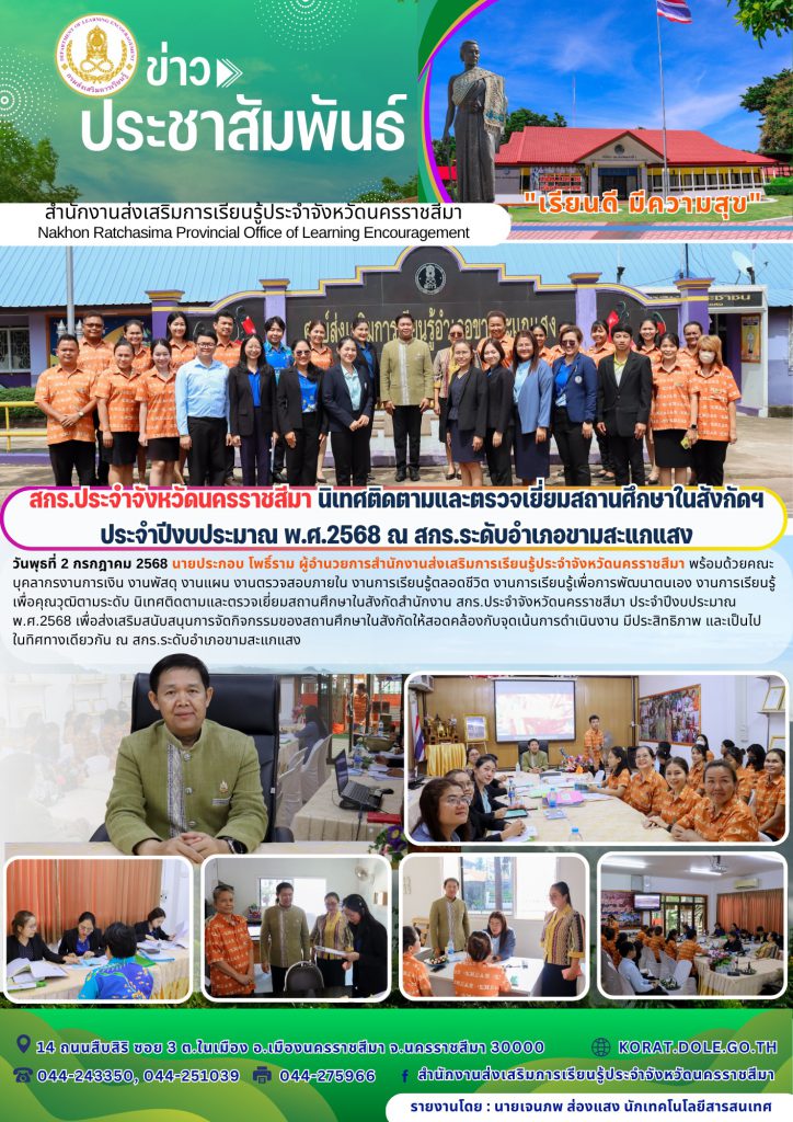 สกร.ประจำจังหวัดนครราชสีมา นิเทศติดตามและตรวจเยี่ยมสถานศึกษาในสังกัดฯ ประจำปีงบประมาณ พ.ศ.2568 ณ สกร.ระดับอำเภอขามสะแกแสง