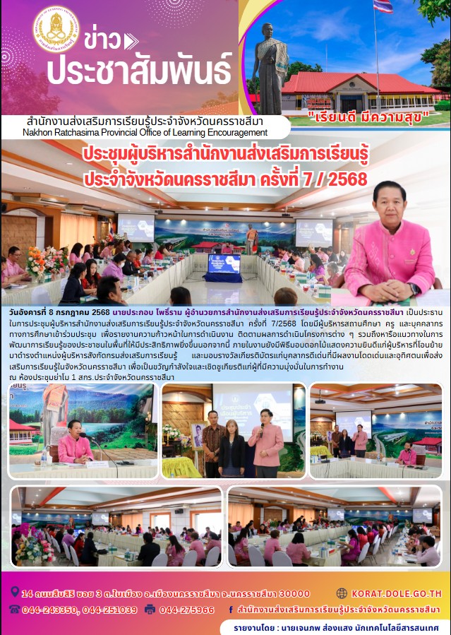ประชุมผู้บริหารสำนักงานส่งเสริมการเรียนรู้ประจำจังหวัดนครราชสีมา ครั้งที่ 7 / 2568