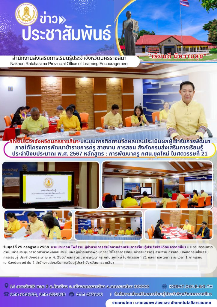 วันศุกร์ที่ 25 กรกฎาคม 2568 นายประกอบ โพธิ์ราม ผู้อำนวยการสำนักงานส่งเสริมการเรียนรู้ประจำจังหวัดนครราชสีมา ประธานกรรมการ