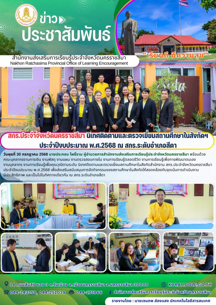 สกร.ประจำจังหวัดนครราชสีมา นิเทศติดตามและตรวจเยี่ยมสถานศึกษาในสังกัดฯ ประจำปีงบประมาณ พ.ศ.2568 ณ สกร.ระดับอำเภอสีดา