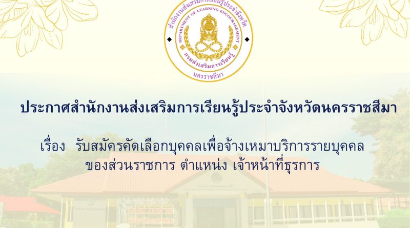 Newsข่าวจัดซื้อ/จัดจ้างดาวน์โหลดประกาศ ประกาศสำนักงานส่งเสริมการเรียนรู้ประจำจังหวัดนครราชสีมา 14 ตุลาคม 2025 Jenphop new ประกาศรับสมัครจ้างเหมา ธุรการดาวน์โหลด