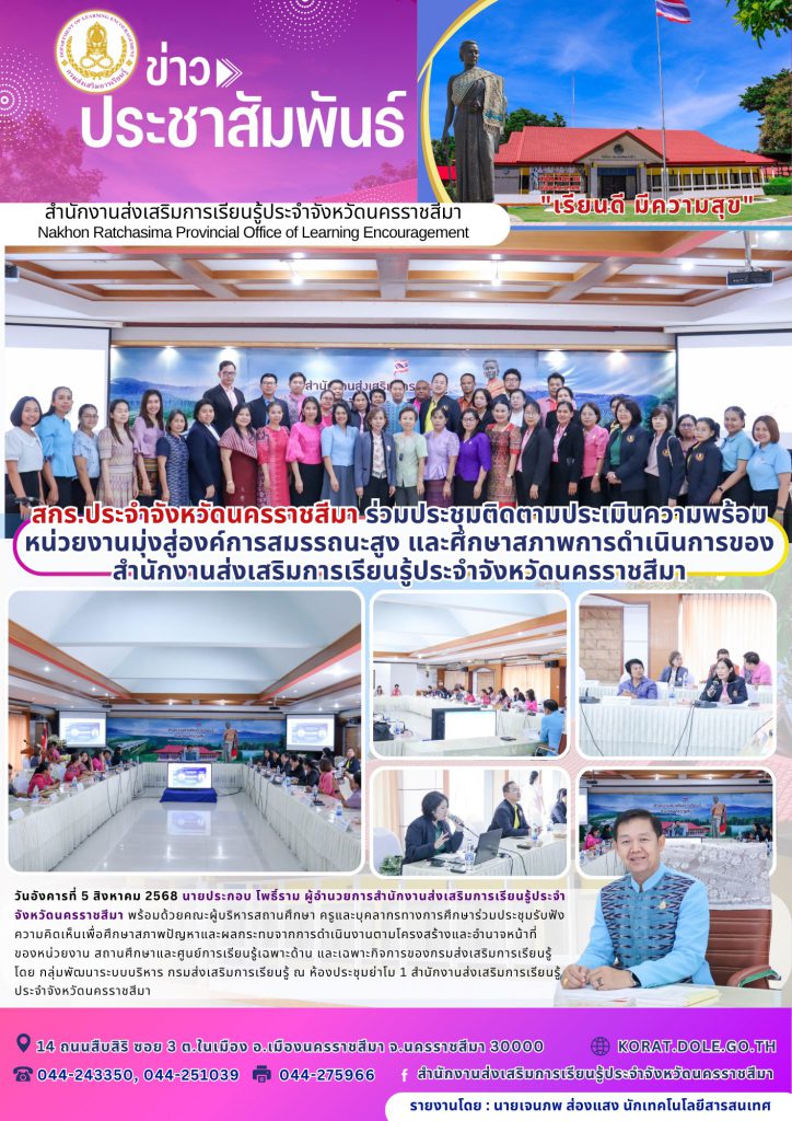 สกร.ประจำจังหวัดนครราชสีมา ร่วมประชุมติดตามประเมินความพร้อมหน่วยงานมุ่งสู่องค์การสมรรถนะสูง และศึกษาสภาพการดำเนินการของสำนักงานส่งเสริมการเรียนรู้ประจำจังหวัดนครราชสีมา