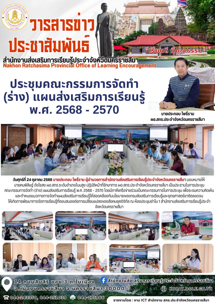 วันศุกร์ที่ 24 ตุลาคม 2568 นายประกอบ โพธิ์ราม ผู้อำนวยการสำนักงานส่งเสริมการเรียนรู้ประจำจังหวัดนครราชสีมา มอบหมายให้
