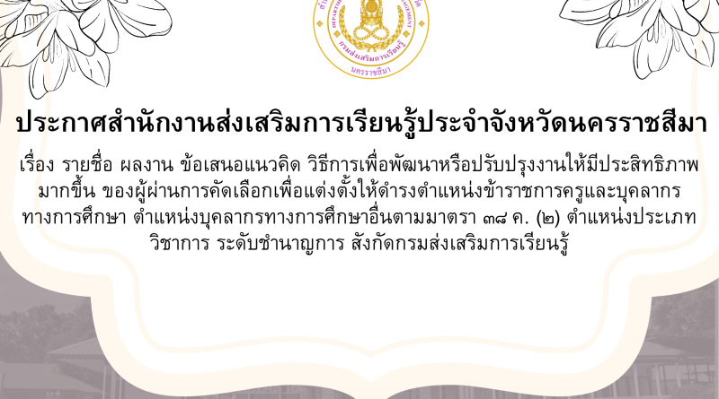 ประกาศสำนักงานส่งเสริมการเรียนรู้ประจำจังหวัดนครราชสีมา